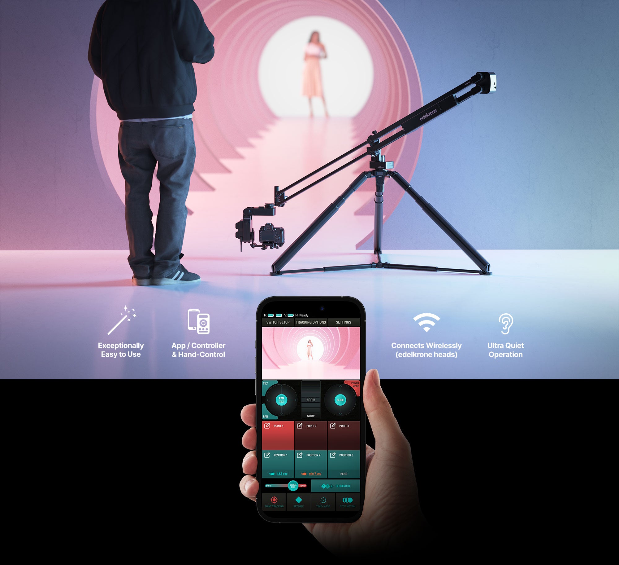 The edelkrone App serves as a comprehensive and intuitive control platform, enabling seamless wireless control of all edelkrone devices from both Apple and Android* devices.