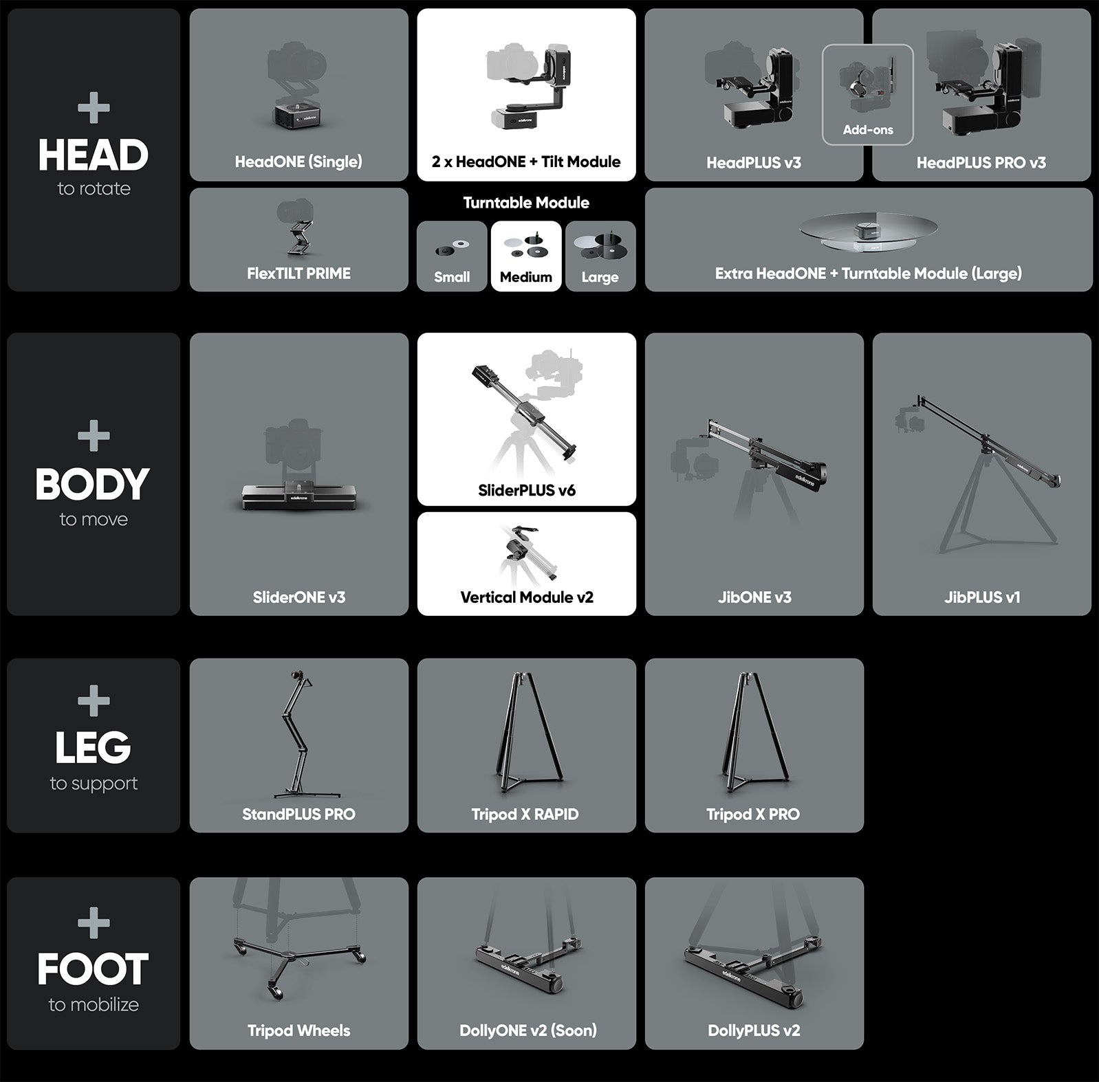 SliderPLUS v6 + Vertical Module v2 + 2 x HeadONE v2 + Tilt Module + Turntable Module (Medium)